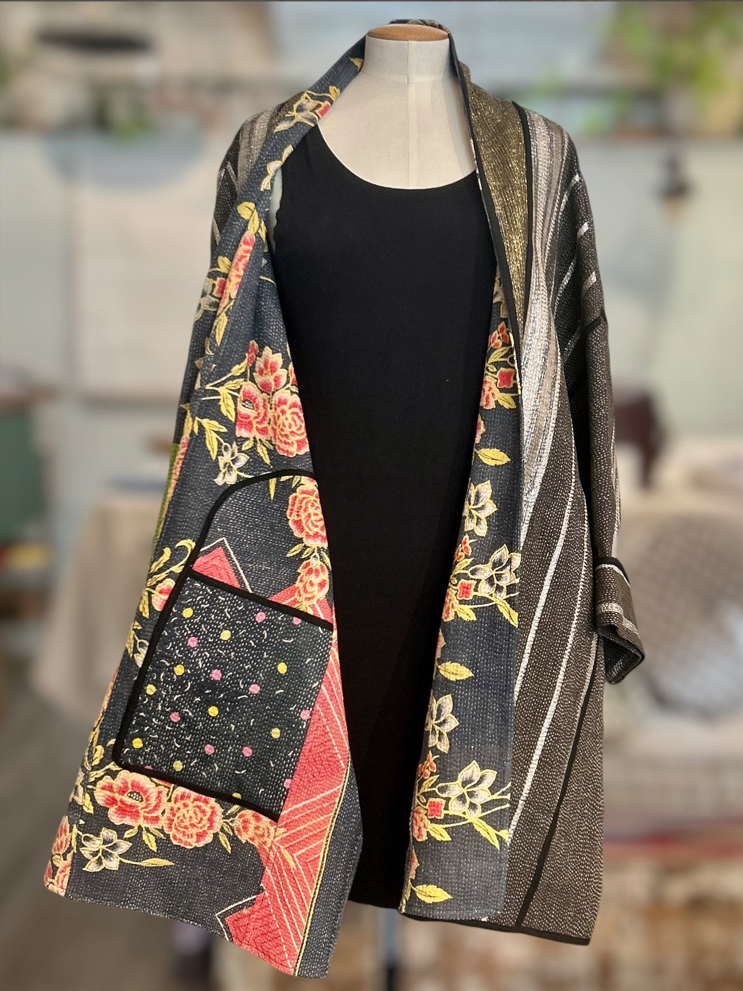 Kantha quilts, blankets, throws and custom fabricated cushions for the house, made with fine hand loomed textiles from around the world.