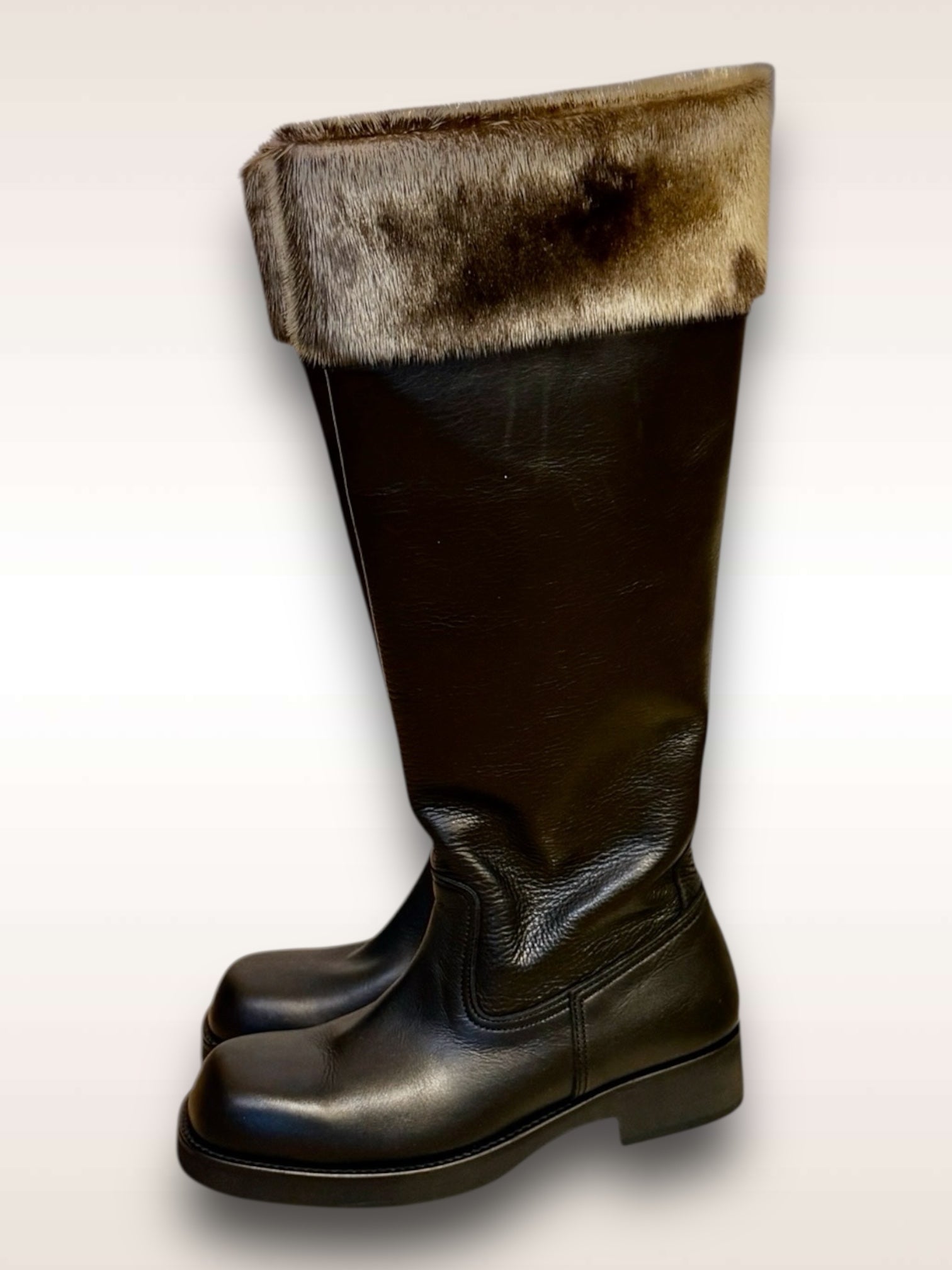 Leather square toe boots with seal skin cuffs. From AW 1999 collection